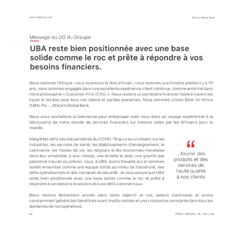 hauts et les bas pour tous nos clients et parties prenantes. Nous sommes United Bank for Africa