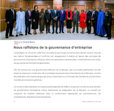 United Bank for Africa Plc (UBA Plc) considère la bonne gouvernance dʼentreprise comme lʼune de
