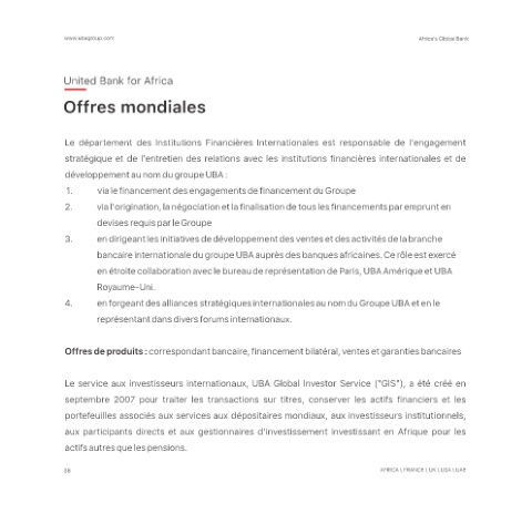 bancaire internationale du groupe UBA auprès des banques africaines. Ce rôle est exercé