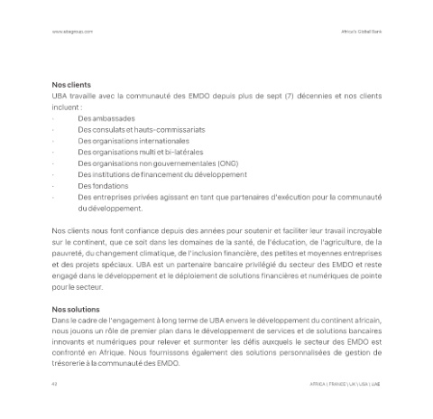 et des projets spéciaux. UBA est un partenaire bancaire privilégié du secteur des EMDO et reste