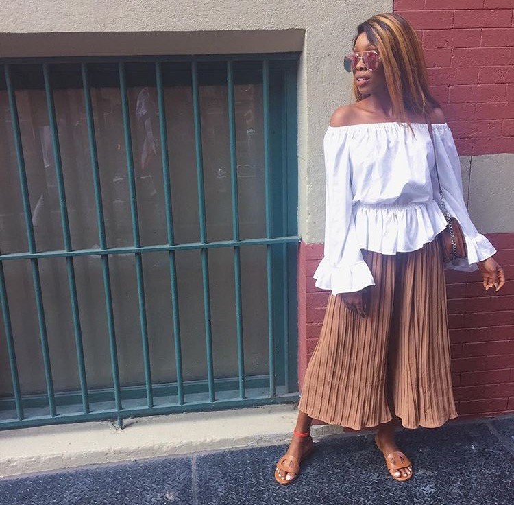 8: Pleated culottes and an off shoulder