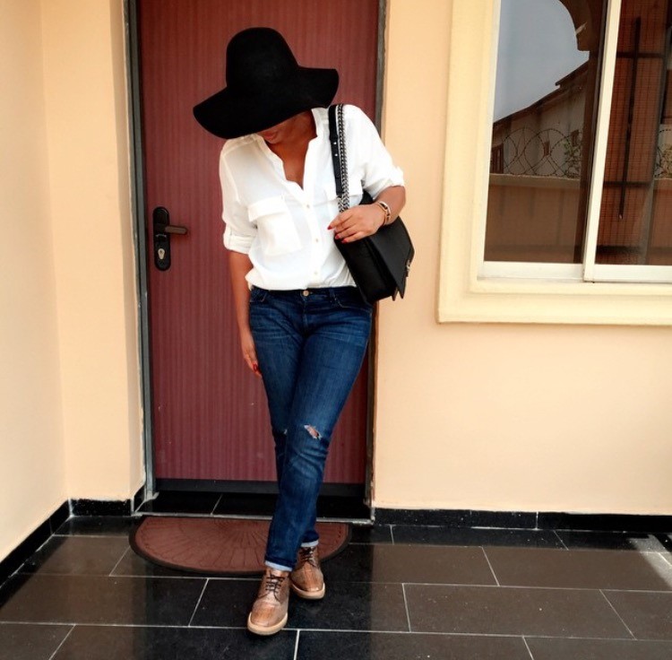 5: A nice round neck top, clutch purse, slippers and a hat
