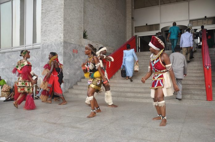 Lagos, traditional African dancers welcomed UBA staff, dressed in different