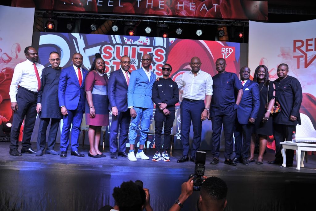 | L-R: Group Head Marketing Communications; Dupe Olusola, GMD; Kennedy Uzoka, Wizkid, Group Director, Corporate Communications; Bola Atta, Chairman UBA Group, Tony Elumelu, CON. |