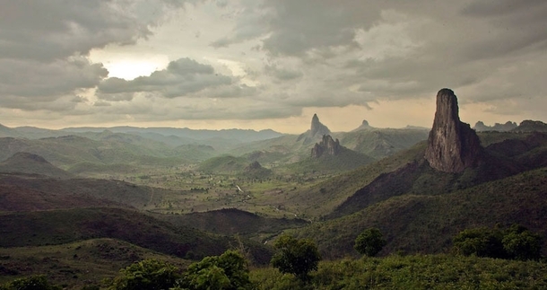 long-dormant volcanoes, basalt outcroppings, and the Mandara Mountains. The
