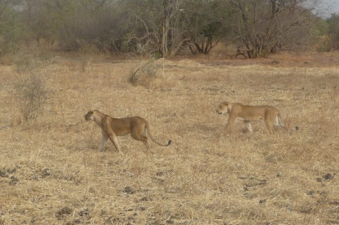 common to see huge herds of elephants and giraffes in the park.  Lions can also be sighted in their natural