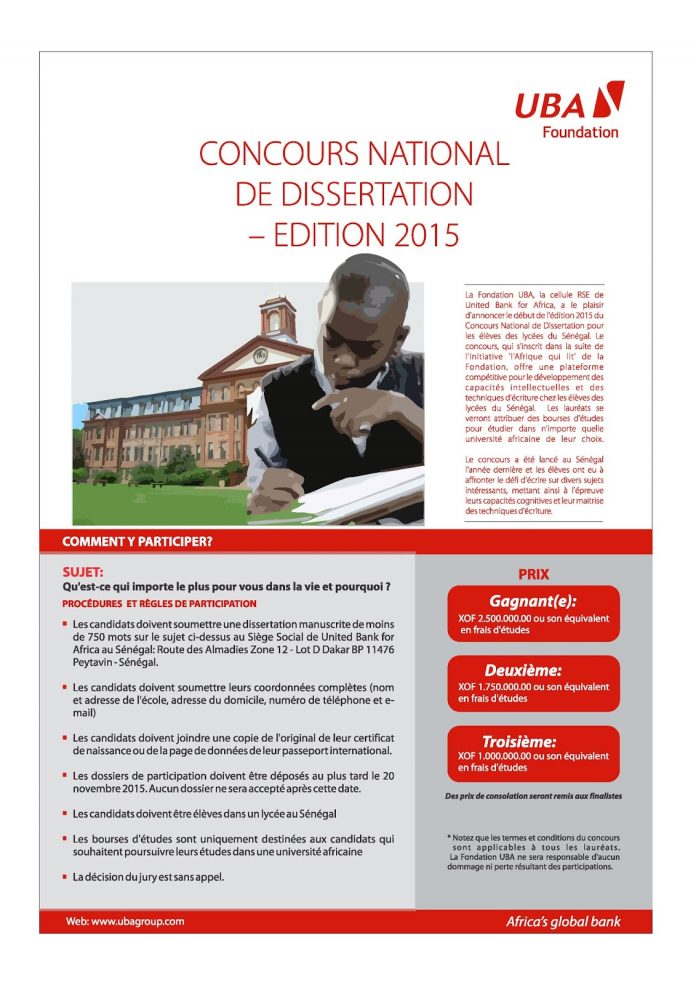 du Concours National de Dissertation organisée par la Fondation UBA au Sénégal