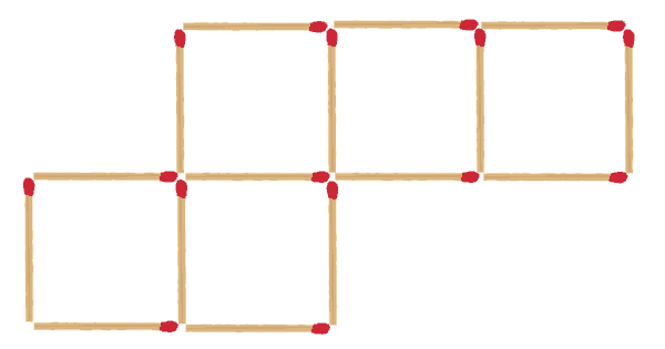 3. Move only 2 matchsticks so that you get 4 (identical) squares. There should not be any spare matchsticks left.