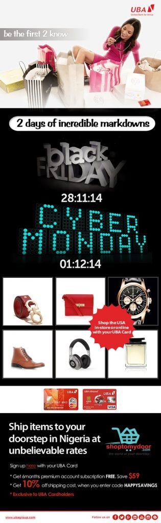 enjoy further discounts when they shop online with UBA cards. This offer will be valid for the Black Friday