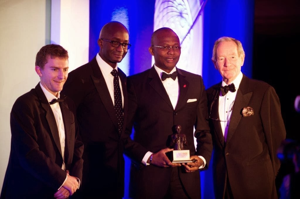 plaque won by UBA Senegal and Michael Buerk, the award host, during the