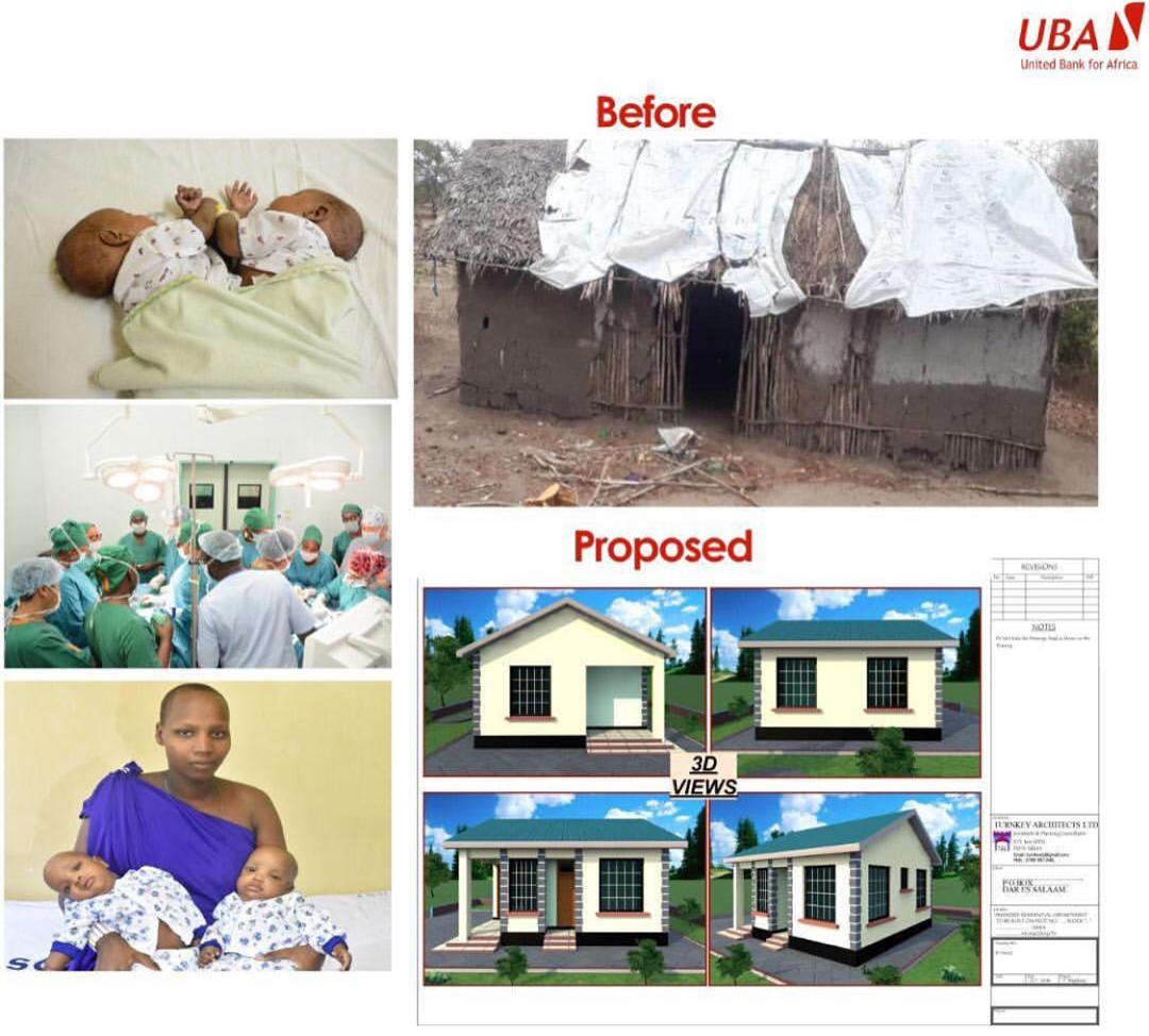 The United Bank for Africa (UBA) Foundation has today donated TZS 16,080,000 towards the Construction of a 2 bedroomed house and provision of a 10 years NHS Insurance Cover for the separated conjoined twins.