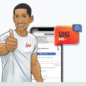 You can chat with Leo on WhatsApp, Facebook Messenger, or Instagram DM.