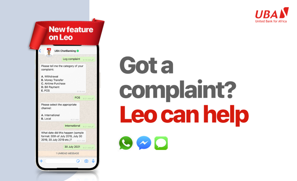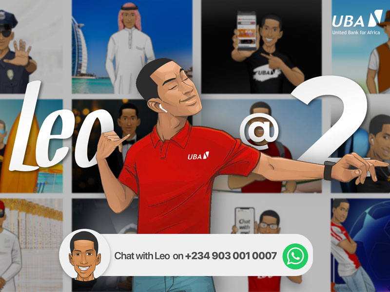 Leo is UBA’s AI-powered digital banking assistant that helps with banking tasks such as balance checks, fund transfers, and bill payments via social media platforms like Facebook and WhatsApp.