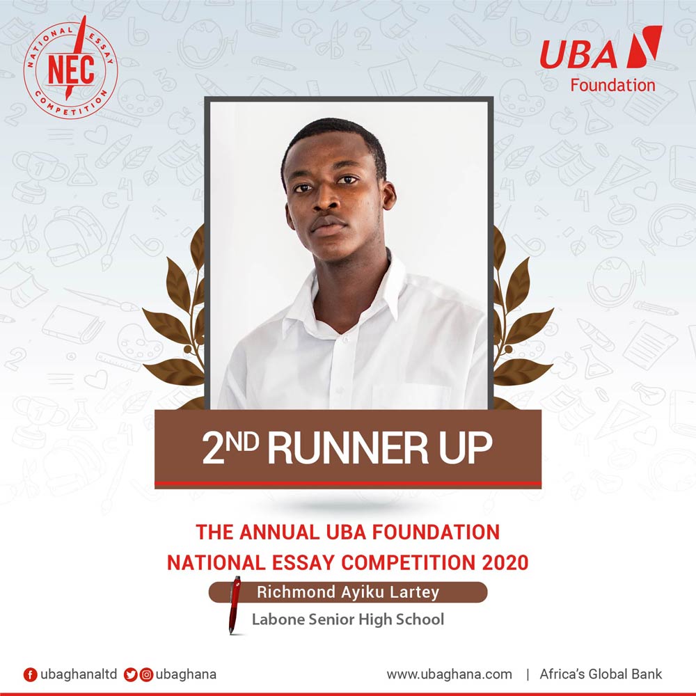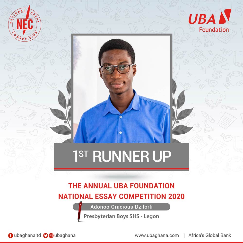 Two students from the Presbyterian Boys Senior High School (PRESEC, Legon), Kwame Antwi Ahenkorah, and Gracious Dzidzorli Adonoo have emerged as the winner and first runner-up respectively in the 2020 UBA National Essay Competition that has come to successful completion.