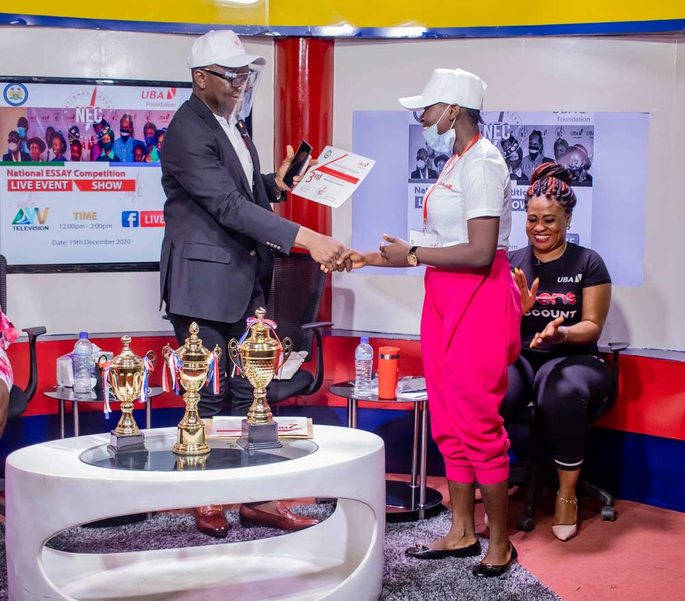 This competition was organized in collaboration with the Ministry of Basic and Senior Secondary Education (MBSSE). A live TV Studio Session Event was held at the African Young Voices (AYV) Television on Saturday 19th December where the following emerged as the winners of the 2020 UBA Foundation National Essay