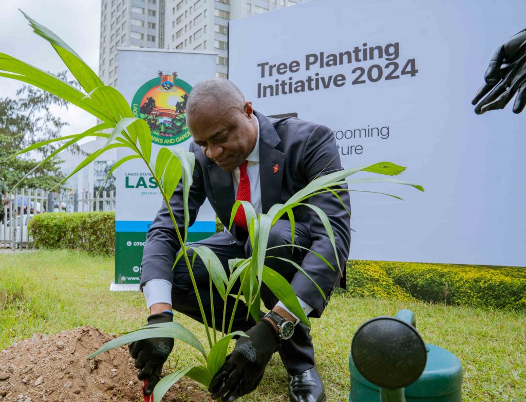 Group Managing Director/Chief Executive Officer, United Bank for Africa (UBA) Plc. Oliver Alawuba at the flag-off of UBA Foundation’s Tree Planting Initiative, where the Bank plans to plant 2 million threes across Africa in 2024, held at the UBA Foundation Garden in Marina, Lagos.