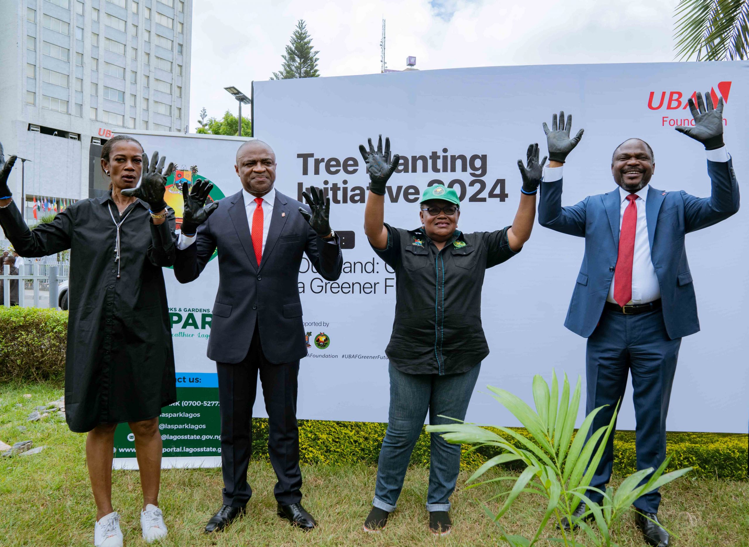 Managing Director/Chief Executive Officer, United Bank for Africa (UBA) Foundation, Bola Atta; Group Managing Director/Chief Executive Officer, United Bank for Africa (UBA) Plc. Oliver Alawuba; Head of Tree Planting and Maintainance, Lagos State Parks and Gardens Agency, Mrs. Funto Aina; and Group Deputy Managing Director, UBA Plc. Muyiwa Akinyemi at the flag-off of UBA Foundation’s Tree Planting Initiative, where the Bank plans to plant 2 million threes across Africa in 2024, held at the UBA Foundation Garden in Marina, Lagos