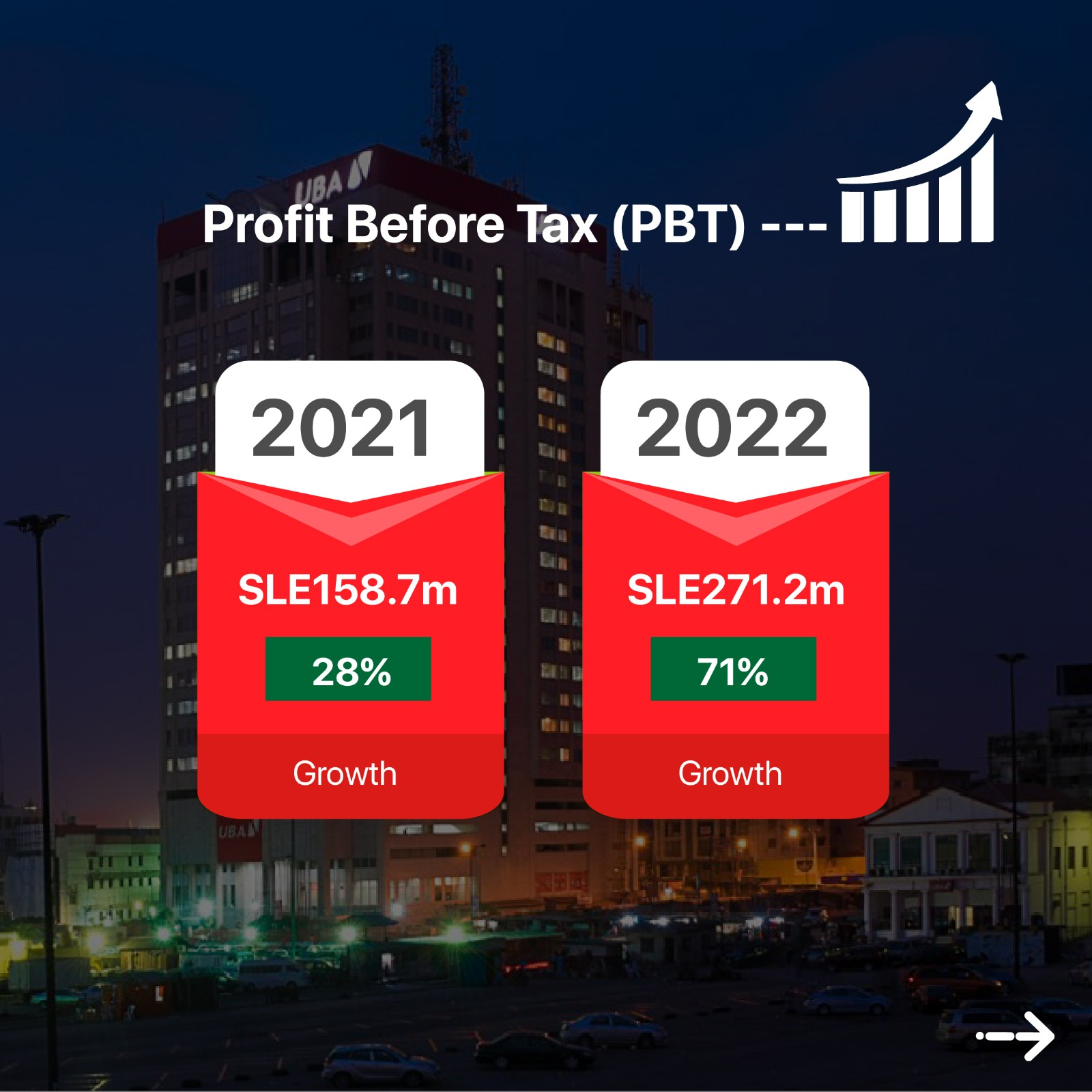 Its gross earnings grew by 64% YoY, reaching SLE 427 million while profit before tax and profit after tax increased by 71% YoY to SLE 271 million and SLE 203 million, respectively.  The bank also saw improvements in its cost-to-income ratio and return on average equity.